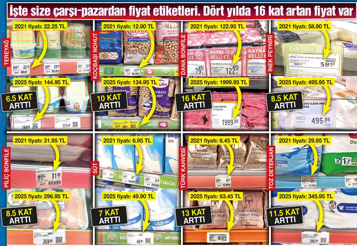 Türkiye’nin yaşadığı ekonomik kriz, 2021’de ‘Faiz sebep enflasyon sonuç’ teziyle daha da derinleşti. Bu kriz en çok da gıda enflasyonunu içinden çıkılmaz hale getirdi. SÖZCÜ, 2021 yılı Mart ayında 25 üründen oluşan bir alışveriş sepetinin fiyatlarını bugünle kıyasladı. Sepet 4 yılda 8.7 kat zamlandı. Aynı sürede asgari ücret yalnızca 6 kat zamlandı.